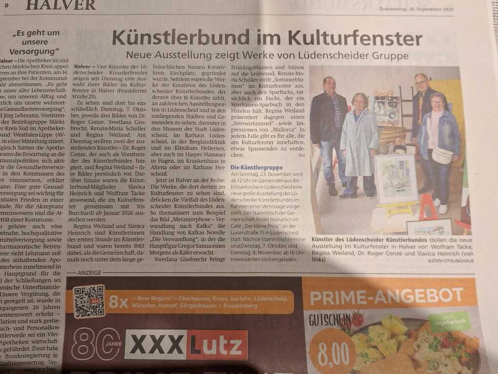 ![]() ![]() ![]() ![]() ![]() ![]() ![]() Ausstellung in der Erlöserkirche 26.11.2023 - 14.1.2024 ![]() ![]() ![]() Ausstellung 40 Jahrfeier in der Kreuzkirche 2023 ![]() Ausstellung in der VHS Lüdenscheid 2023 Ausstellung in der Erlöserkirche Lüdenscheid 2022 ![]() Lüdenscheider Nachrichten vom 04.05.2022 Ausstellung in der Kreuzkirche Lüdenscheid ![]() Lüdenscheider Nachrichten vom 09.11.2021 Ausstellung im Kleinen Prinzen 05.11.21 - 31.01.22 ![]() Lüdenscheider Nachrichten vom 25.11.2021 Ausstellung in der Erlöserkirche 21.11.-19.12.2021 ![]() |